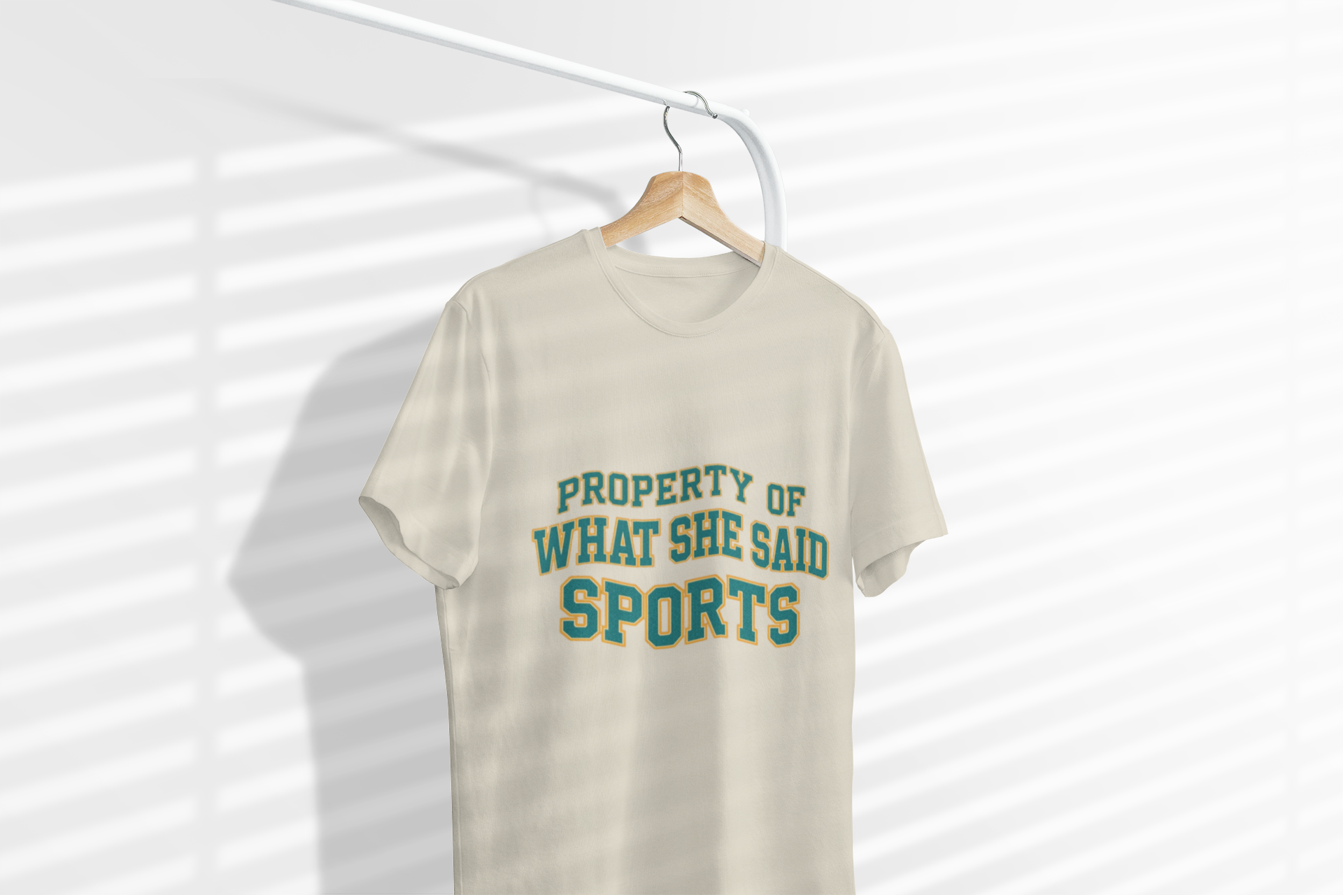 Rep What She Said Sports! "Property of What She Said Sports! " Tee gives a fun and empowering vibe. It is perfect for individuals who love sports and want to show support for What She Said Sports Podcast! This T-Shirt is ideal for sports events, casual outings, and as a gift for sports enthusiasts.